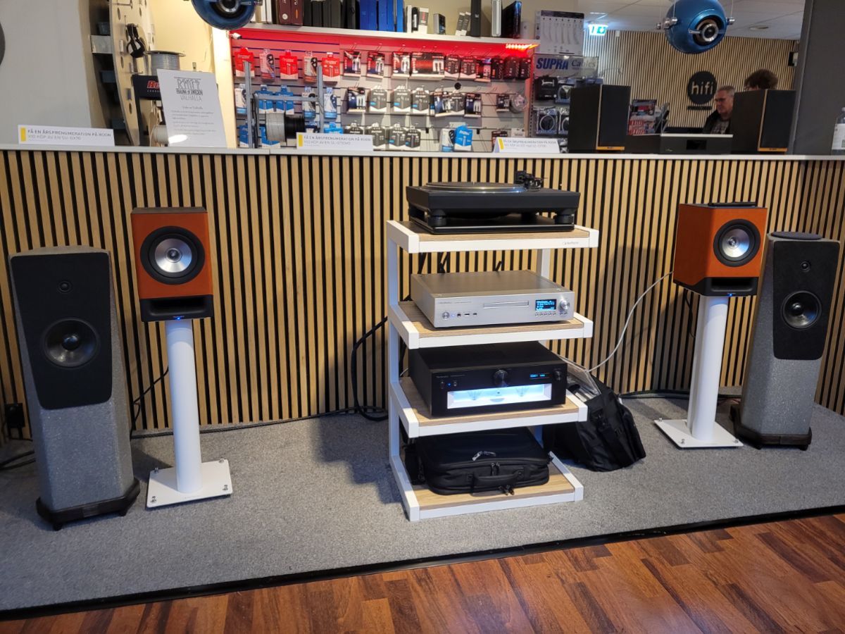 I 40 år har HiFi-Punkten i Trollhättan drivit sin hifi-butik. Bröderna Lennart och Martin Niklasson visade stolt upp butiken med en mässa med elva leverantörer på plats den 12–13 november. Martin driver butiken i Skövde sedan nästan 35 år och Lennart butiken i Trollhättan. Jag tillbringade några spännande timmar i butiken den 12:e, men trots tiden missade jag några av utställarna.